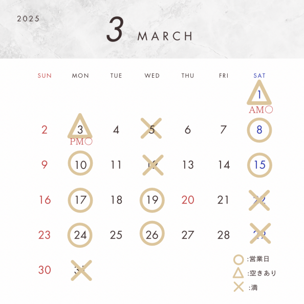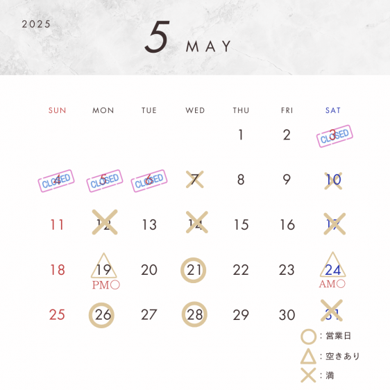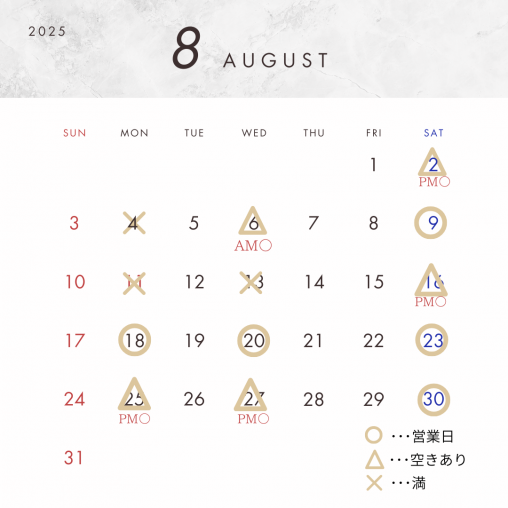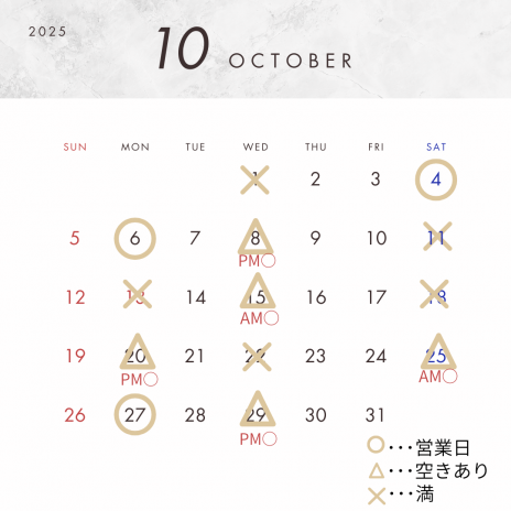 10:00~19:00 施術中は電話に出られないこともあります。 LINEのお友達追加をしてメッセージをお願いします。 休日:火・木・金・日曜日 |