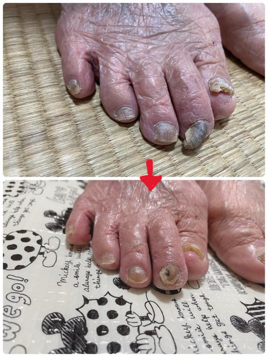 こんにちは! 少しずつ介護フットケア(爪切り)のご依頼をいただいています。 「こんなに丁寧に爪を切ってもらったことがなかったー」 「自分ではどうすることもできなくて悩んでたの」 等と、とても喜んでいただけました。 年齢を重ねるにつれて、周りに頼ることが多くなって、爪切りくらいで手を煩わせたくないと、我慢している方がとても多くいるように感じます。 氣付いた時には肥厚して切りにくかったり、巻き爪になって痛みが生じていたり・・・ 手と違って靴下や靴に覆われている足は、周りが確認しないと異変に氣付きにくいのです。 足が痛くなってから痛みを除く、介護が必要になってから支援してもらう、転倒してから原因を探る、ではなくて、今、元気に歩けるうちに、全体重を支えている足の大切さを知って、介護の支援が必要になる前に予防できるようお手伝いが出来たらと思います。 ![]() |